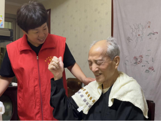 走访慰问结束后,工作人员联系志愿服务团队,一起为高龄休干理发、打扫卫生等。
