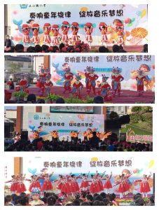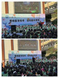 高年级的同学们带来了歌曲串烧合唱、《扇子舞》、武术操《精忠报国》和舞蹈《健康动起来》。