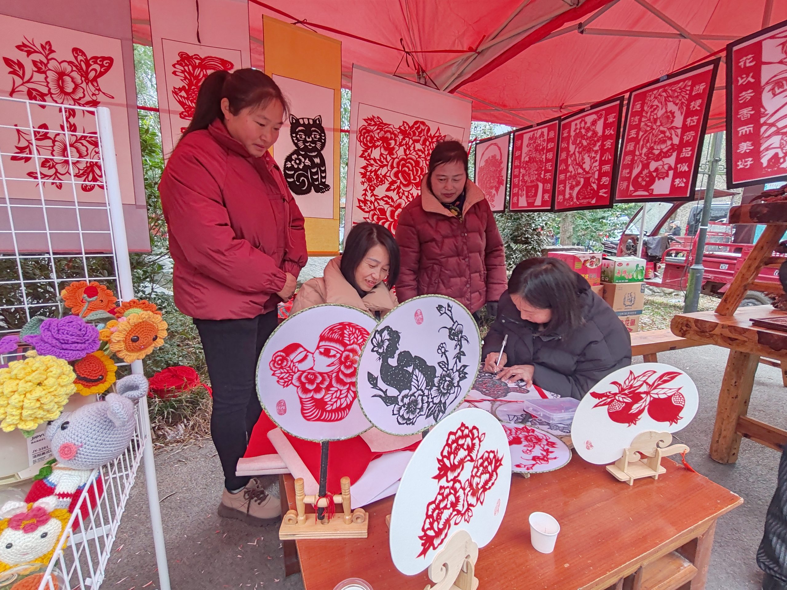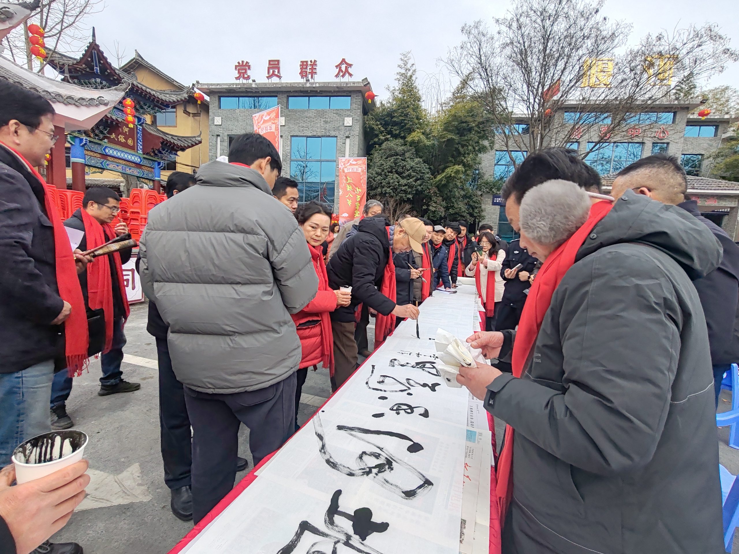 与此同时,年货节还精心策划了一系列精彩纷呈的文艺演出,热闹有趣的本土年俗节目和丰富多彩的文艺节目轮番上演,既丰富了群众春节期间精神文化生活,也增添了节日的喜庆氛围。在舞台旁,书法家们在现场挥洒笔墨,书写并赠送春联一百多副,给游客和乡亲们送去浓浓的新春祝福。