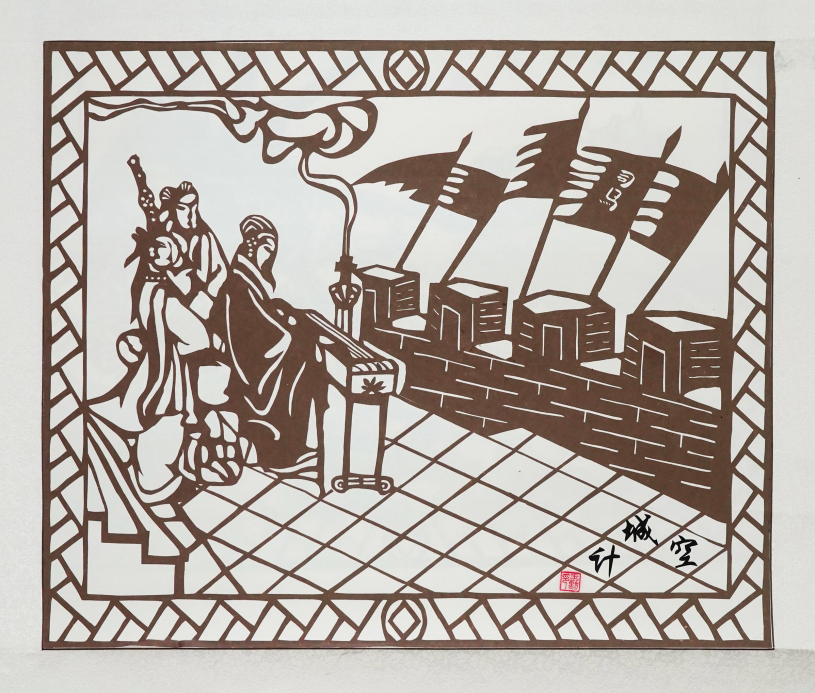 在襄阳剪纸艺人张玉勤的妙手下,经典故事《空城计》被栩栩如生地呈现在剪纸作品之中。罗贯中笔下,诸葛亮足智多谋,在兵力悬殊的危急时刻,大胆设计了“空城计”这一神秘战术。