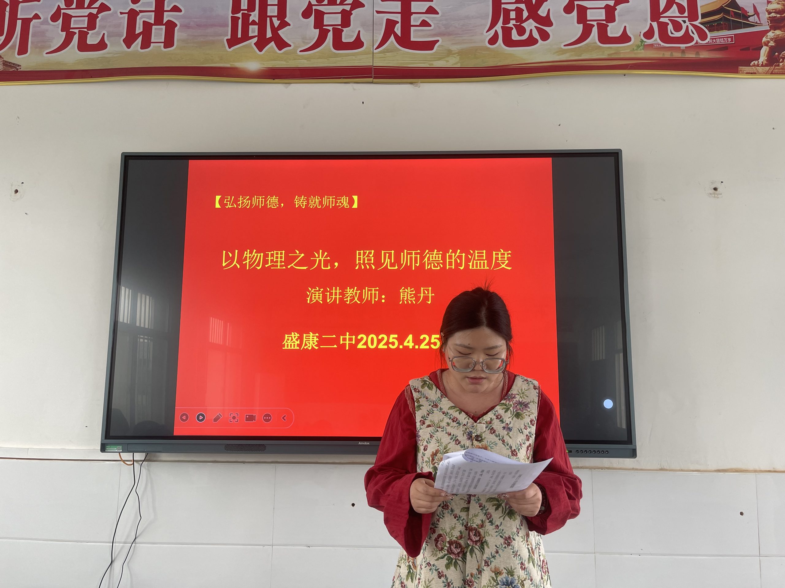 4月25日下午,第二场师德演讲比赛在学校会议室热烈举行。张路老师深情讲述《名师之光,照亮教育的未来之路》,以老教师为榜样,分享了自己从教育“新兵”成长为优秀青年班主任的蜕变历程;熊丹老师带来《物理之光,照见师德的温度》,巧妙地将物理学科知识与教育温情相融合,用暖心故事诠释师者仁心。两位老师以情叙事、以理动人,赢得现场阵阵掌声。
