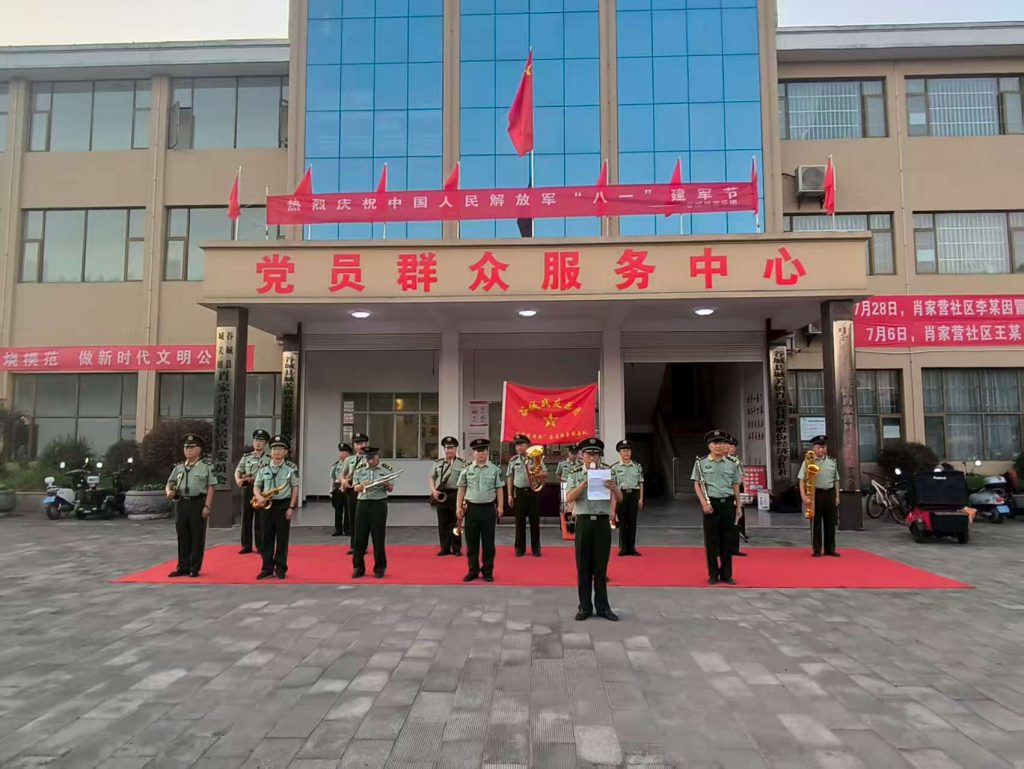 七月流火,热浪翻滚。7月30日(八一建军节)前夕的下午7时30分许,谷城战友乐团“军乐进社区”活动在湖北省谷城县城关镇肖家营社区广场举行。活动现场,20多名身着戎装,器宇轩昂,装戴整齐,手拿管乐,像劲松一般的队友们,在社区门前用红地毯搭设的简易舞台上,用管乐演奏了《欢迎进行曲》《中华人民共和国国歌》《解放军进行曲》《人民军队忠于党》《强军战歌》等14首军歌。