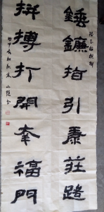本人自退休后就喜爱书法至今,并多次入展获奖,现是市书协会员,中国老年书画协会会员,近几年来又喜爱上楹联创作,妙笔千支描盛世,红歌万首颂神州。