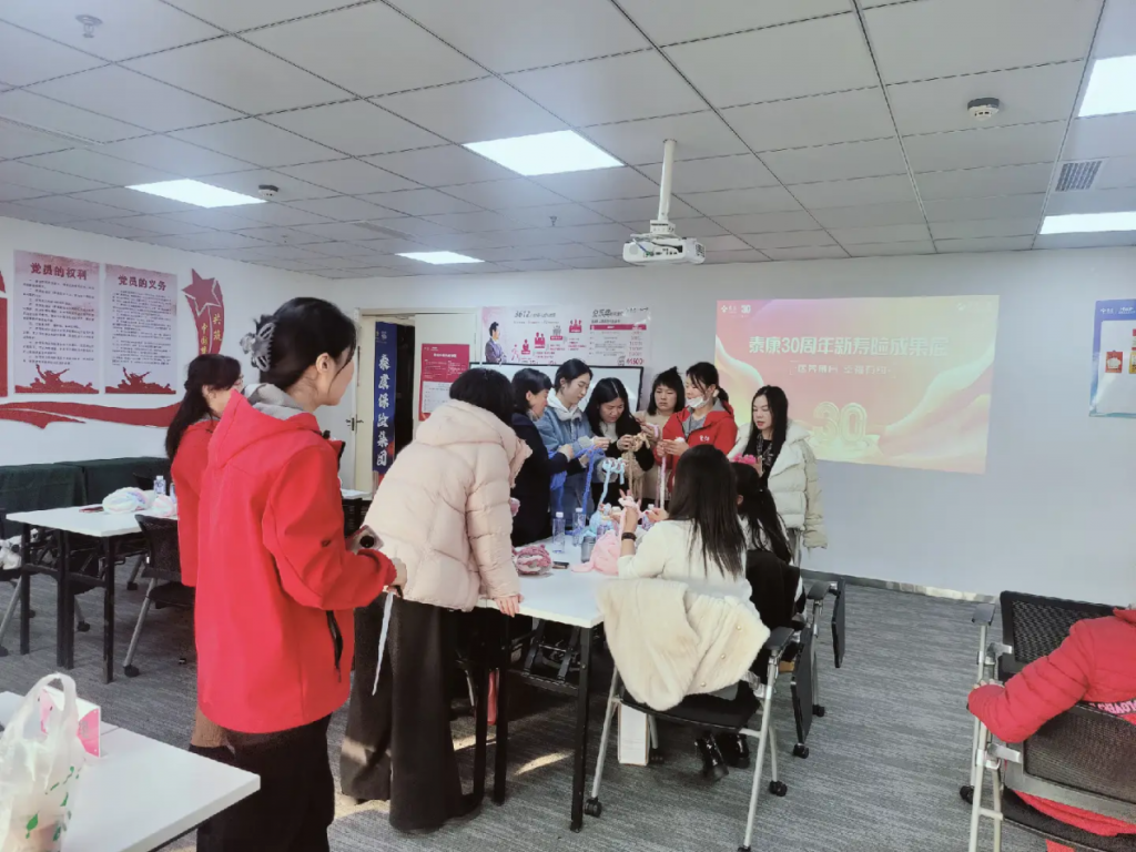 本次活动特别融合“指尖温度,温暖相伴”的冬季关怀主题,邀请手工美学导师现场指导客户进行“手指围巾”DIY创作。在温馨愉悦的氛围中,客户们亲手绕线、编织,将柔软绒线转化为一条条独具特色的围巾。这一过程不仅让客户体验到手作的专注与治愈,更寓意着泰康服务如围巾般贴心相伴,为客户及其家庭守护一份温暖而长久的关怀。