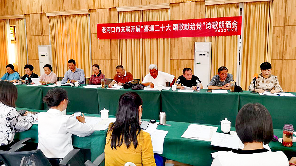 2022年9月25日,为了迎接党的二十大胜利召开,老河口市文学界举办了“喜迎二十大,颂歌献给党”为主题的原创诗歌诵读会,营造团结、奋斗、自信、自强的浓厚氛围。
