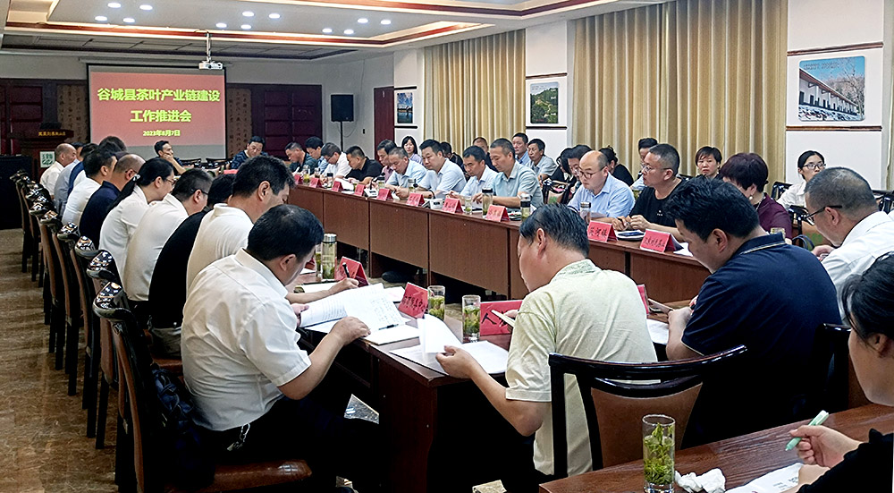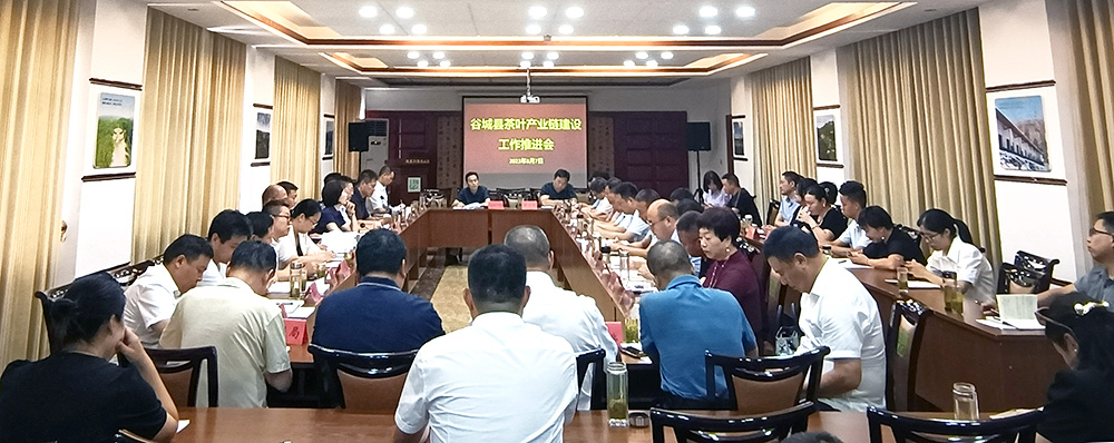 2023年8月7日,谷城县茶叶产业链建设工作推进会在玉皇剑召开。谷城县领导许杰锋、刘海燕,县委办、各乡镇人民政府、薤山旅游度假区管委会分管领导,茶产业链相关单位负责人和以湖北玉皇剑茶业公司张于学为代表的茶产业龙头企业负责人,合计近50人参与本次会议。