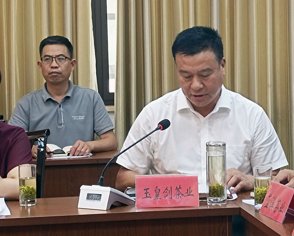 会上,湖北汉家刘氏茶业股份有限公司、湖北玉皇剑茶业公司、湖北裕满春茶业有限公司等共计10余家公司代表人员进行了积极发言。玉皇剑董事长张于学对玉皇剑茶产业发展情况进行了汇报。玉皇剑公司是公共品牌“襄阳高香茶”的核心生产企业。多年来,玉皇剑以绿色低碳为模式,将有机茶种植贯彻始终;以清洁智能为标准,着力提升产品质量;以茶促旅为目标,做好产业融合大文章。