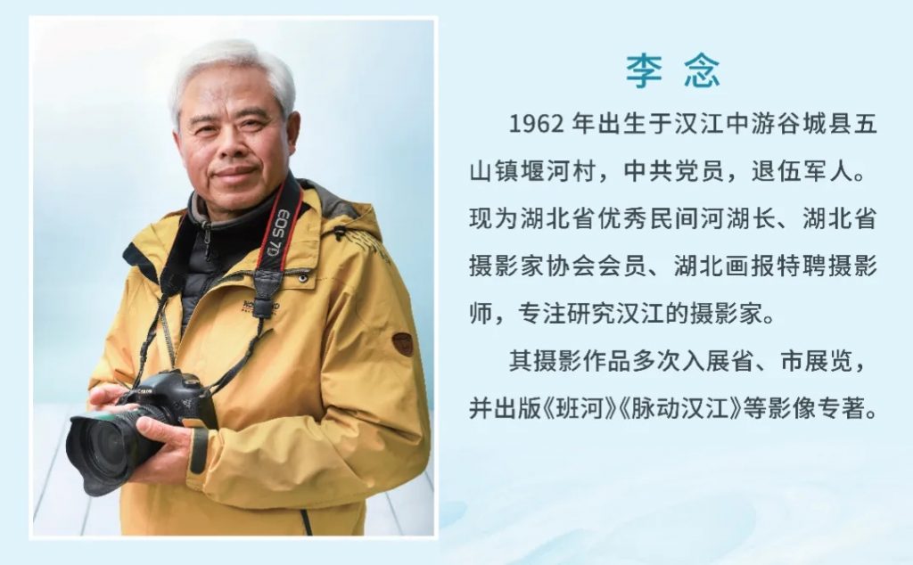 李念二十六年间徒步溯江拍摄十万张照片,其作品聚焦汉江禁渔成效、南水北调工程、河湖生态修复等议题,2016年举办《情暖汉江》摄影展、2019年向襄阳市档案馆捐赠汉江主题作品等行动,持续推动公众参与生态保护。