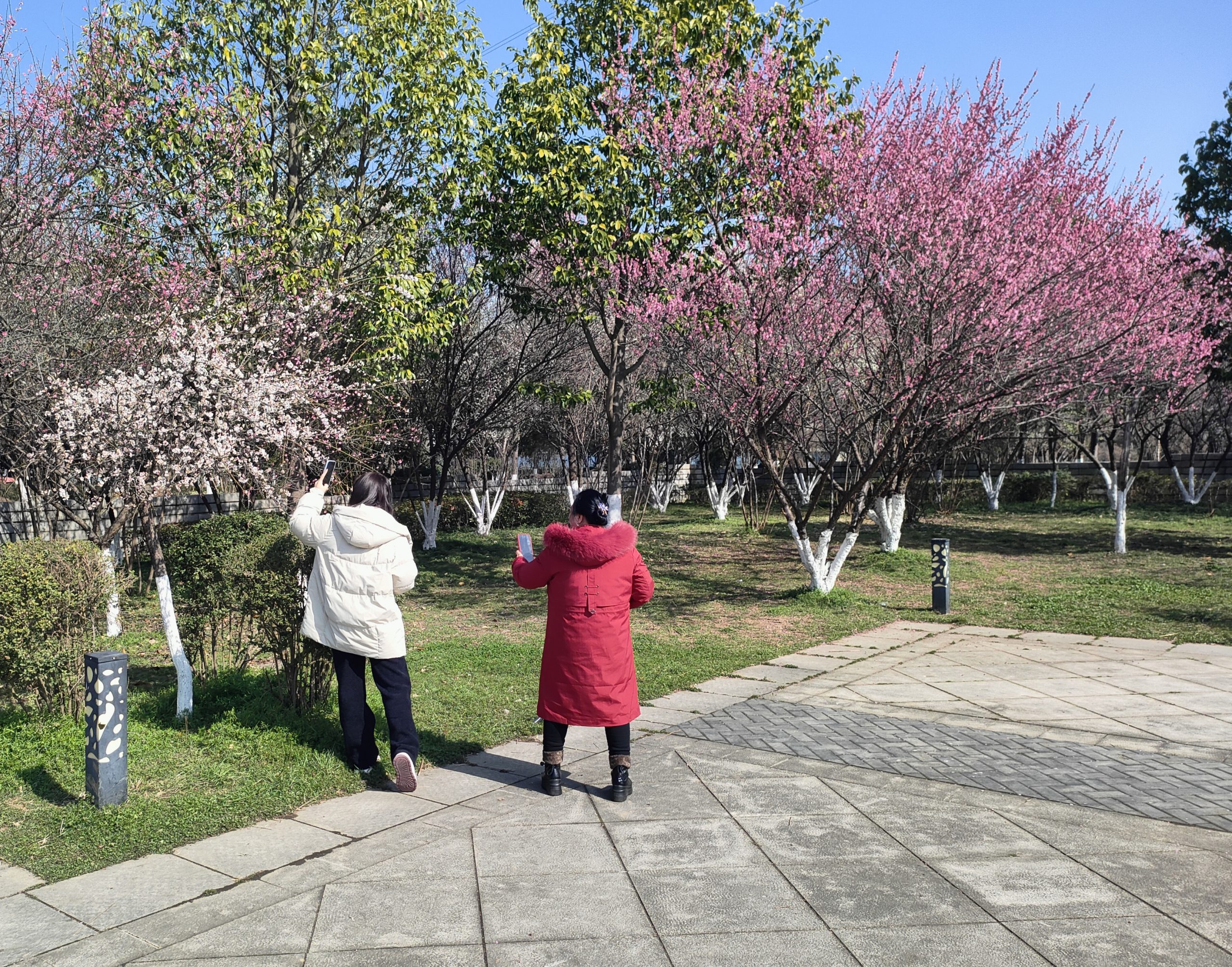 据了解,公园梅园共种植梅花500余株,整体花期较长,眼下正值最佳观赏期。春节假期,不少市民携家人、邀好友前来赏梅踏青、拍照留念,在花香中感受自然之美,尽享新春惬意时光。大家漫步花间,定格美好瞬间,欢声笑语与梅香相融,处处洋溢着喜庆祥和的节日氛围。这片美丽的梅林不仅为城市冬日尾声和早春时节增添了一抹雅致的香气,更成为了市民游客心仪的“热门打卡地”。
