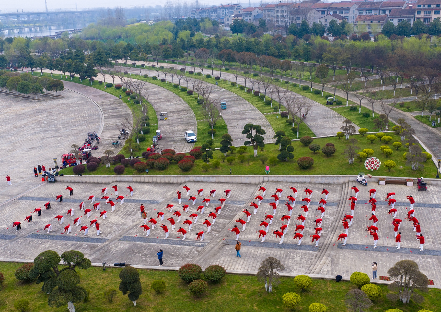 以拳会友 以扇抒情 以剑展艺!谷城湿地公园上演“太极盛宴”