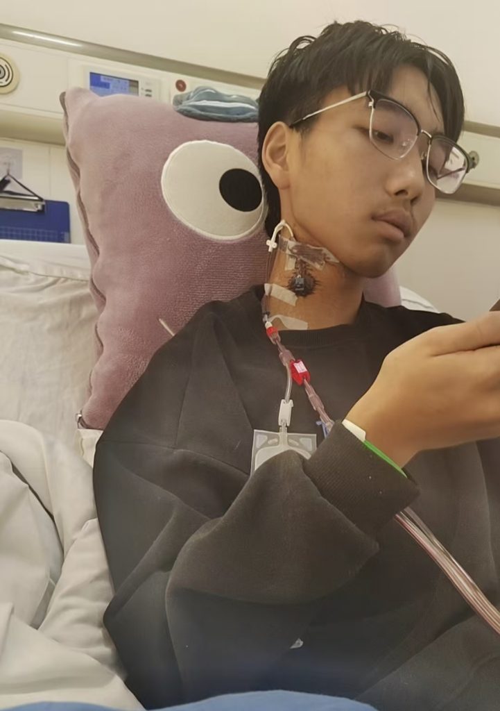 采集时,医护人员从他的颈部置管抽取血液,经过离心机分离出造血干细胞后,剩余血液再从手臂回输到体内。颈部的置管带来了剧烈的疼痛,喝水、吃饭、吞咽时,嗓子和脖子如同针扎一般,疼得他难以忍受,整整3天时间,他几乎没有进食,全靠营养液维持身体机能。更凶险的是,第一天采集结束后,他突发严重并发症,身体各项指标急剧下降,被紧急办理住院接受治疗。躺在病床上,身体虚弱到极点,可他依旧心系父亲,不顾家人和医生劝阻,坚持一边接受治疗,一边配合完成后续采集,不肯耽误一分一秒。