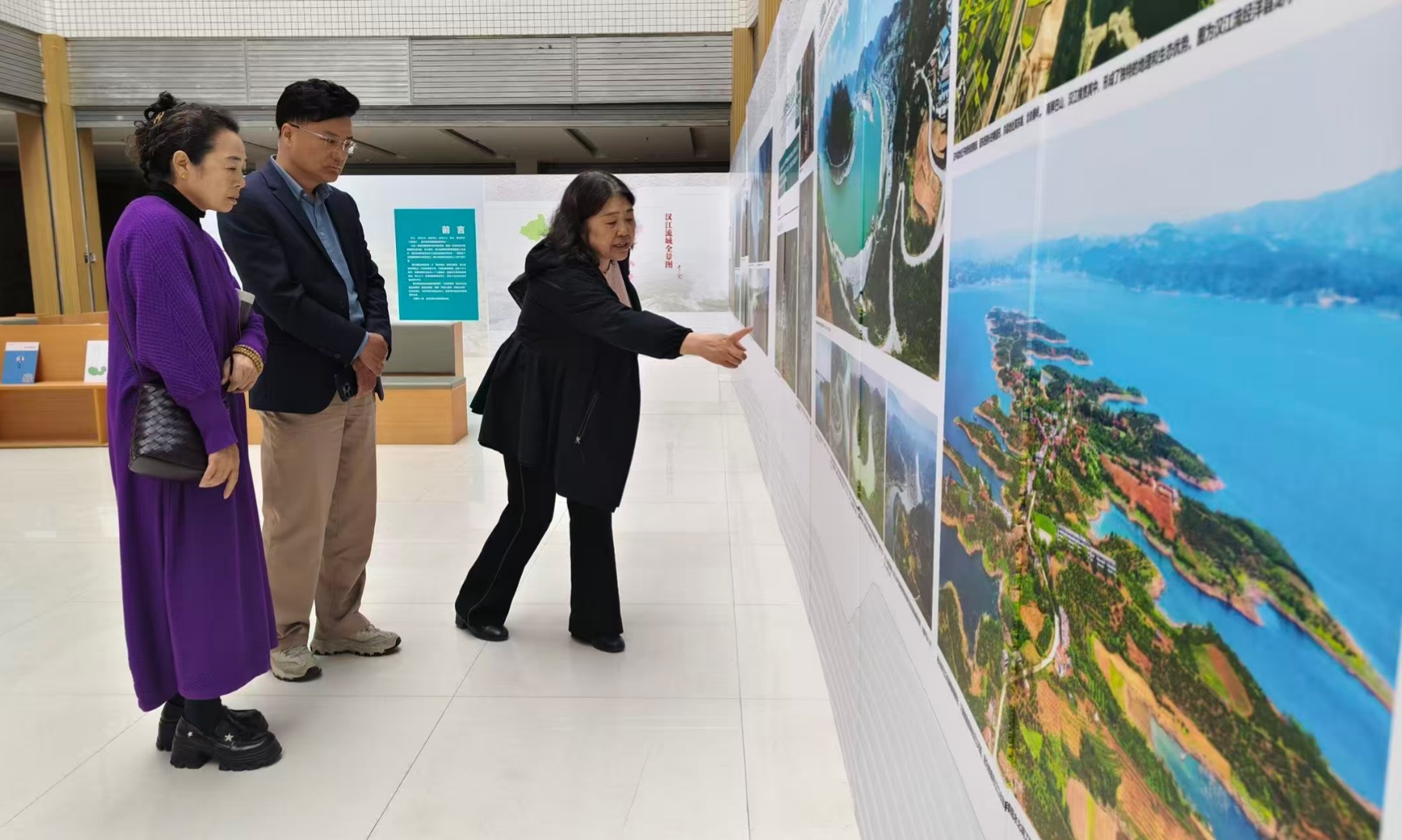 图书馆馆长方基志全程陪同,为嘉宾细致讲解每幅作品背后的汉江生态与人文故事。 展览以影像为媒,系统呈现汉江从源头到入江的壮阔风貌与自然地理脉络,兼具艺术价值与文化内涵。观展过程中,梅笑雪一行驻足细看、深入交流,在光影之间品读汉江之美,感受母亲河的生态底蕴与时代新貌。 梅笑雪深耕汉水文化研究与传播多年,统筹推进研究会各项工作,以满腔热忱守护、传承襄阳汉水文脉,是汉水文化坚定的践行者与传承者。