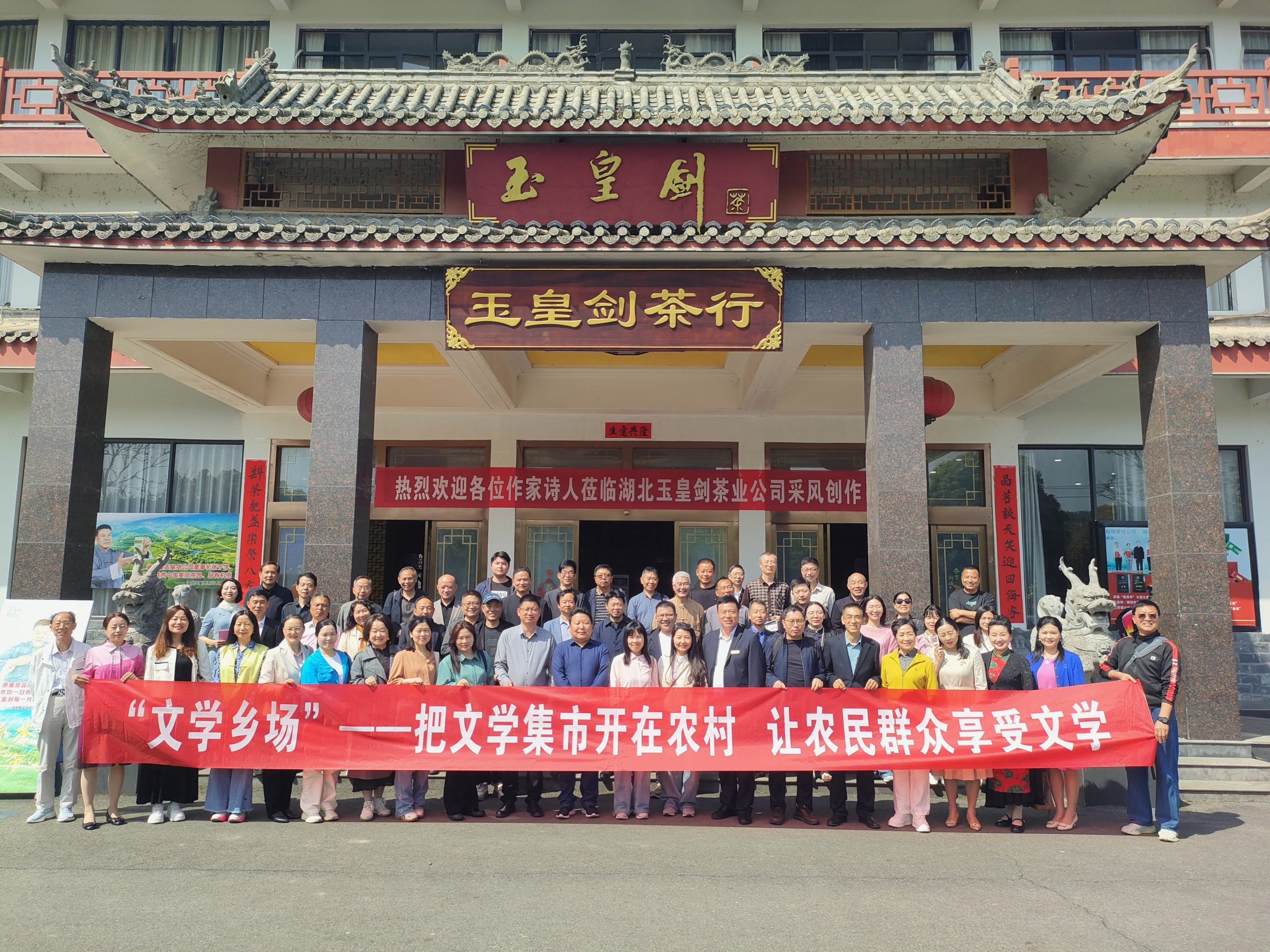 2026年4月18日,“文学乡场”活动在五山镇举行。活动由湖北省作协小说创作委员会、襄阳市作家协会主办,谷城县文联、五山镇新时代文明实践所、谷城县作家协会和湖北玉皇剑茶业有限公司承办。省作协副主席、省作协小说创作委员会主任朱朝敏和知名评论家汤天勇、知名作家万雁、范小雅,以及襄阳各县市区作家诗人70余人赶赴一场文学大集。大家看茶园、逛公园、品春茶、赏春色、听朗诵,用手中的笔为茶乡五山描绘新的画卷。