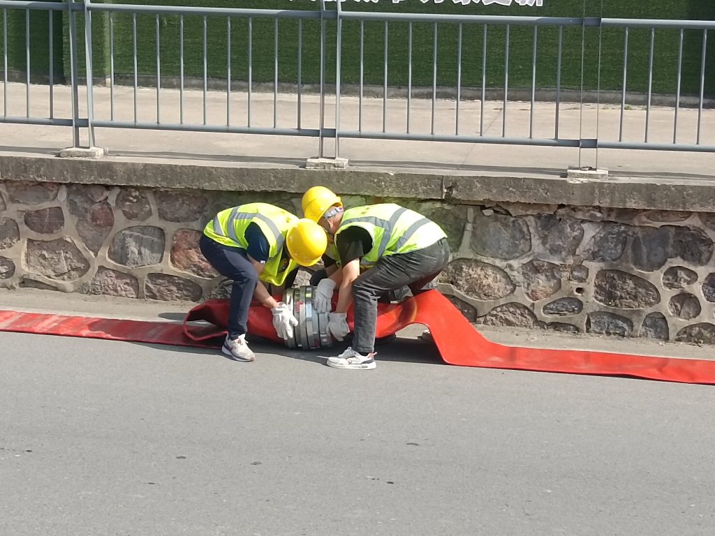 预演模拟强降雨导致涵洞严重积水场景。